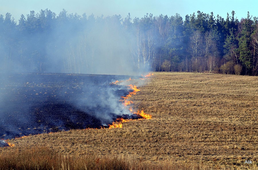 Płonące trawy, łąki i nieużytki to corocznie o tej porze odwieczny problem strażaków. Niestety, ta metoda "oczyszczania" pól powoduje niekontrolowane pożary, niszczy glebę i zabija drobne organizmy. Giną też ludzie. Wypalanie traw jest zabronione, a dopuszczająca się tego procederu osoba podlega grzywnie, a nawet karze do 10 lat pozbawienia wolności.