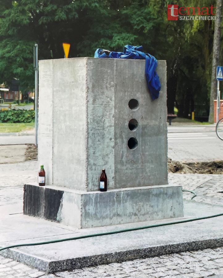 Pod koniec lipca 2001r. niemalże na ostatnią chwilę wykonano fundament pod żelbetowy postument.