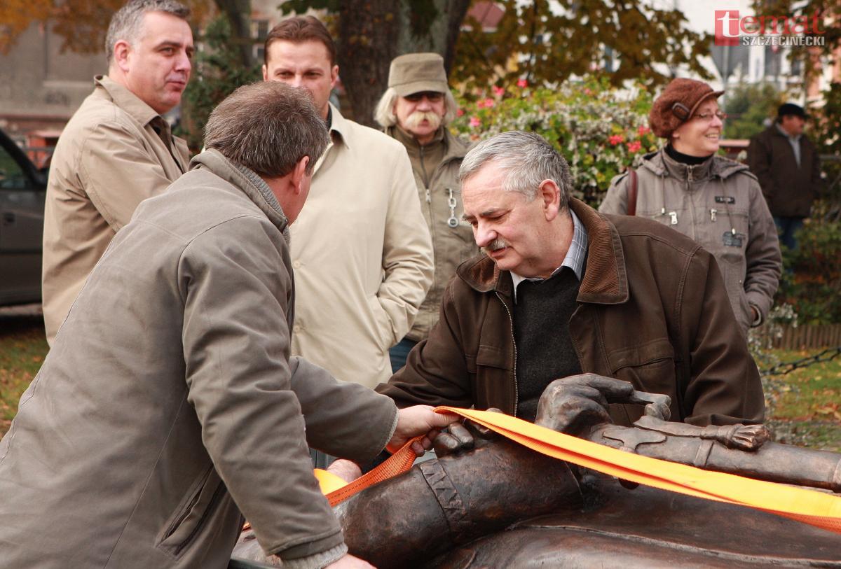Umieszczona na postumencie postać okazała się na tyle kontrowersyjna, że postanowiono ją wymienić. Zadania tego podjął się szczecinecki artysta rzeźbiarz Wiesław Adamski. W październiku 2011 roku groteskowa rzeźba została zdemontowana.
