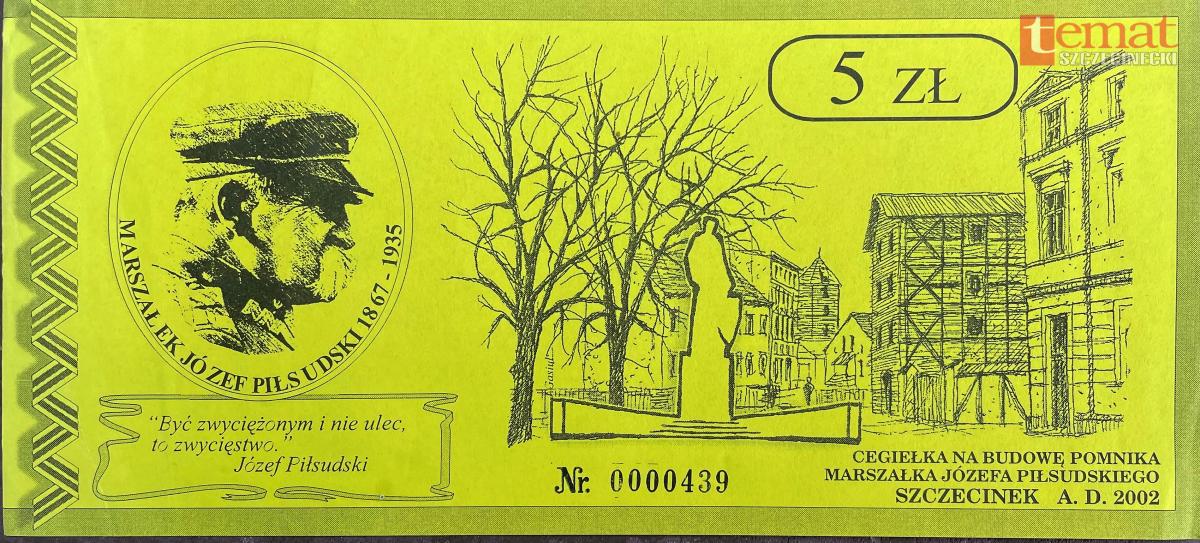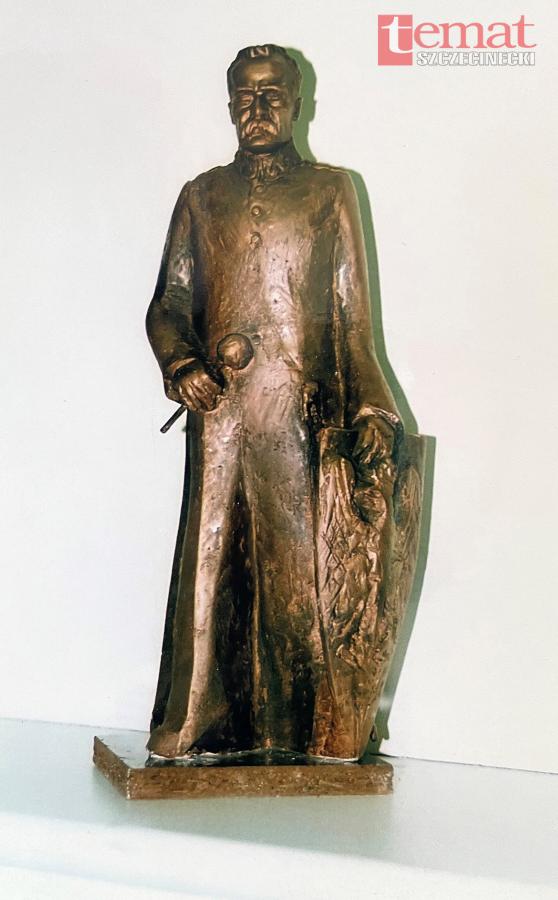 Okazało się, że Zygmunt Wujek zmienił pierwotną koncepcję pomnika i postać marszałka postanowił umieścić na cokole w kształcie prostopadłościanu. Zgodnie z pierwotną koncepcją posąg miał stanąć na piedestale w kształcie rozwartej litery „V” zamykającej perspektywę ul. Zamkowej. Tak właśnie wykonałem rysunek zamieszczony potem na cegiełce. Zgodnie z projektem, Marszałek miał w prawej ręce trzymać buławę, a w lewej tarczę opartą o ziemię z godłem Polski. Miniaturkę wykonaną przez artystę udało mi się utrwalić na zdjęciu.