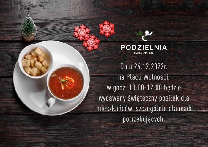 Wigilia i Święta Bożego Narodzenia to wyjątkowy czas. Jednak jest wiele osób potrzebujących, które w tym czasie potrzebują specjalnego wsparcia. Na placu Wolności 24 grudnia otrzymają świąteczny posiłek.