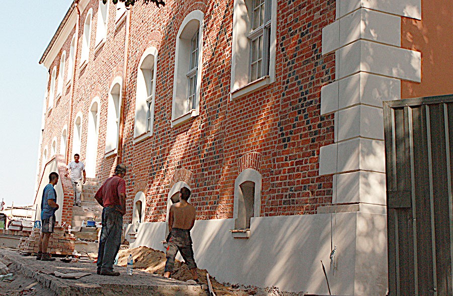 Prace przy renowacji zamku powoli zmierzają ku końcowi. Dzisiaj 26 lipca zostaną zdjęte ostatnie segmenty rusztowania od strony dziedzińca. Roboty budowlane prowadzone były pod ścisłym nadzorem Pawła Połoma, Miejskiego Konserwatora Zabytków. Nowa – stara elewacja wygląda bardzo efektownie.