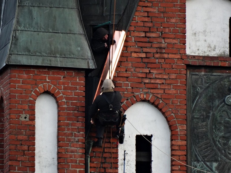 Od kilku dni mieszkańcy Szczecinka mogą przyglądać się pracom, jakie odbywają się kilkadziesiąt metrów nad ziemią na wieży kościoła mariackiego. Właśnie ruszyły doraźne działania, mające na celu polepszenie stanu technicznego mocno zniszczonej wieży. Jak wcześniej informowaliśmy, stan jednego z najwyższych obiektów Szczecinka jest fatalny. Wieża wymaga gruntownego remontu, który oczywiście będzie musiał się wiązać w potężnymi nakładami finansowymi.
