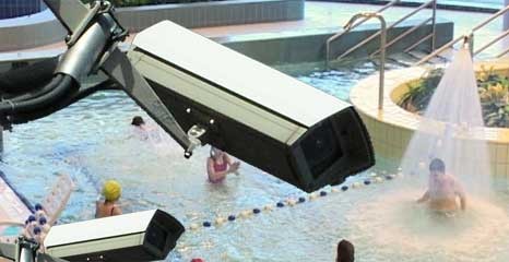 Trybuny są otwarte tylko na imprezy sportowe odbywające się na pływalni, skoro prywatna TV może non stop kamerować moje dzieci to żądam wejścia na basen z moim dzieckiem - ja tylko jako kamerzysta. Inna sprawa to taka, że każdy może sobie założyć kamerę na basenie? Pewnie zaraz okaże się, że to kamery basenu obsługiwane przez - a wtedy zapytamy o cenę :) A ja zamiast na basen teraz pójdę na rower do parku - są tam kamery, ale nie jestem półnagi