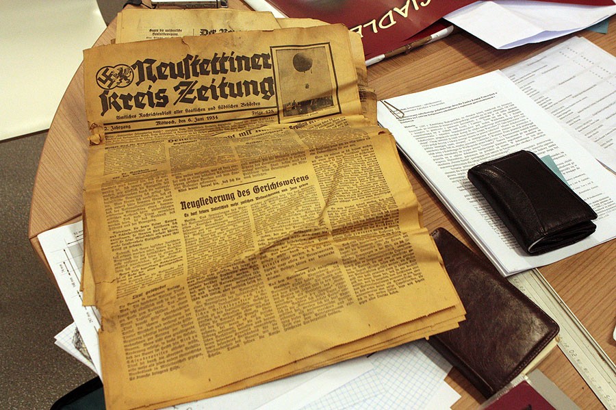 Osiem sztuk gazet: „Neustettiner Kreis Zeitung” i „Norddeutsche Presse”, podczas prac remontowych w piwnicach szczecineckiego ratusza, odnaleźli pracownicy firmy realizującej inwestycję.