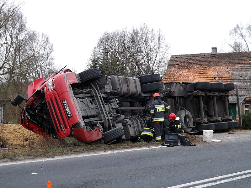 Rozbita ciężarowa scania z naczepą, zniszczone ogrodzenie jednej z posesji i połamane drzewa to efekt zdarzenia drogowego, do którego doszło dziś przed godziną dziewiątą w miejscowości Jeleń w gminie Borne Sulinowo na krajowej dwudziestce. Na ostrym łuku drogi samochód ciężarowy przewrócił się na ogrodzenie. Przyczyną zdarzenia na pewno nie była nadmierna prędkość - twierdzą świadkowie. - Samochód jechał wolno i nagle się przechylił i przewrócił. To mógł spowodować źle rozłożony ładunek w naczepie. Kierowca doznał tylko niegroźnych potłuczeń. W miejscu zdarzenia ruch odbywa się wahadłowo. (rb)