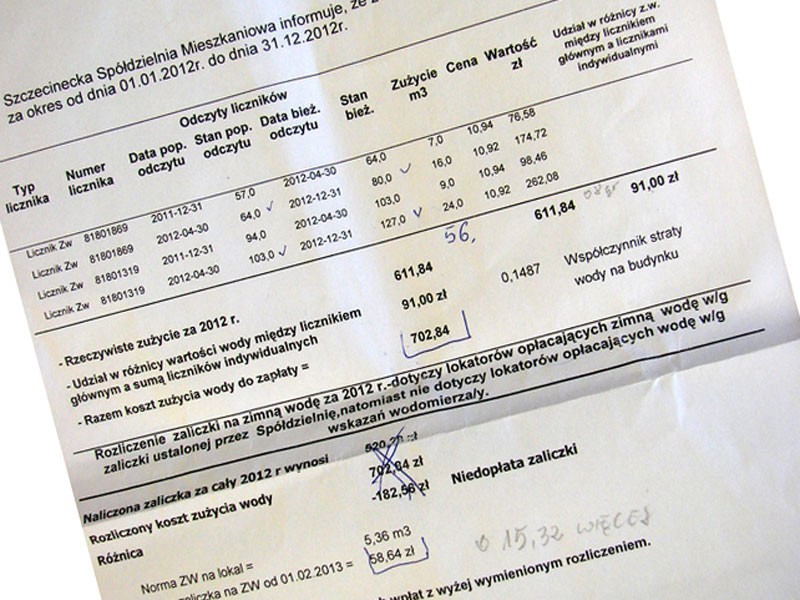 Z prośbą o interwencję w podobnej sprawie zgłosiła się do naszej redakcji mieszkanka bloku wielorodzinnego na os. Zachód. Naszą Czytelniczkę wyraźnie zbulwersował fakt, że spółdzielnia mieszkaniowa dołożyła do jej rachunku dopłatę w wysokości 91 zł. Wszystko przez wspomnianą różnicę wskazań wodomierzy - głównego oraz tego, który znajduje się w lokalu naszej Czytelniczki.