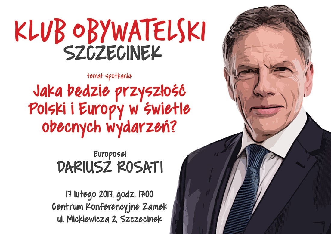 Do Szczecinka, na zaproszenie Klubu Obywatelskiego, przyjedzie europoseł Dariusz Rosati. Spotkanie pod tytułem "Jaka będzie przyszłość Polski i Europy w świetle obecnych wydarzeń" odbędzie się w Centrum Konferencyjnym Zamek 17 lutego o godz. 17.00.
