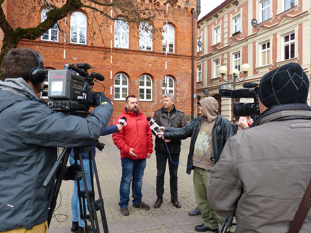 We wtorek, 24 listopada wczesnym popołudniem na placu przed szczecineckim ratuszem odbył się briefing prasowy zorganizowany przez dwóch radnych Rady Miasta – Marcina Bedkę oraz Jacka Pawłowicza. Dotyczył on piątkowej (20.11) wizyty miejskich radnych w zakładzie Kronospan. Wizyta poświęcona była tematowi metod przeróbki odpadów przyjeżdżających do firmy zza zachodniej granicy (więcej na ten temat w artykule „Do Szczecinka jedzie ogromna ilość odpadów” http://temat.net/aktualnosci/23269/Do-Szczecinka-jedzie-ogromna-ilosc-odpadow). Impulsem do spotkania samorządowców z przedstawicielami Kronospanu była także zwołana na początku listopada konferencja SIS Terry, podczas której działacze stowarzyszenia wyrazili głębokie zaniepokojenie znajdującą się na terenie zakładu „znikającą” hałdą, która – jak wynikało z materiału filmowego zaprezentowanego na konferencji – wywożona jest na działki przy ul. Leśnej.