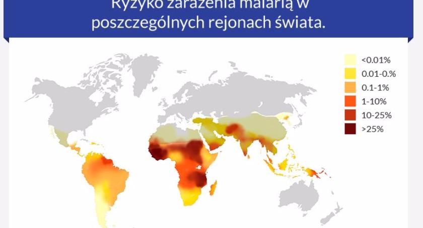 Malaria to choroba występująca w ponad 110 krajach, które są w większości popularną destynacją podróży Europejczyków. Zalicza się do nich m.in. Amerykę Środkową, południowy Meksyk, Karaiby, Afrykę Subsaharyjską i Madagaskar, Amerykę Południową (w szczególności dorzecze Amazonki i Orinoko), Centralną Azję, a więc Afganistan, Tadżykistan i Azerbejdżan, Indie, Indonezję, wyspy Oceanii oraz Papuę Nową Gwineę. Pierwsze objawy malarii, czyli gorączka i dreszcze, bóle mięśni i stawów oraz wyjątkowo silny ból głowy są bardzo często mylone z grypą i przeziębieniem, dlatego choroba jest trudna do zdiagnozowania. Typowe dla malarii jest towarzyszące choremu poczucie zagrożenia i przejmujące zimno, które odróżnia ją od przeziębienia.