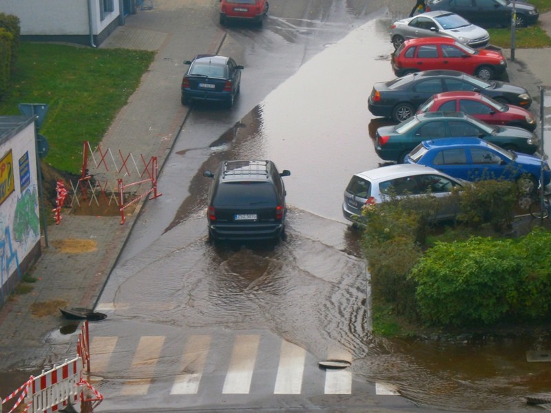 Dziś (11.10) w godzinach porannych wszystkich przechodniów oraz mieszkańców ul. Emilii Plater czekała niecodzienna niespodzianka. Ok. godz. 10 spory fragment ulicy znalazł się pod wodą. Również z kranów w pobliskich mieszkaniach popłynęła brązowa ciecz. Mini powódź spowodowana została awarią starej rury wodociągowej, do której doszło podczas wykonywania prac związanych z wymianą rur na tym odcinku ulicy.