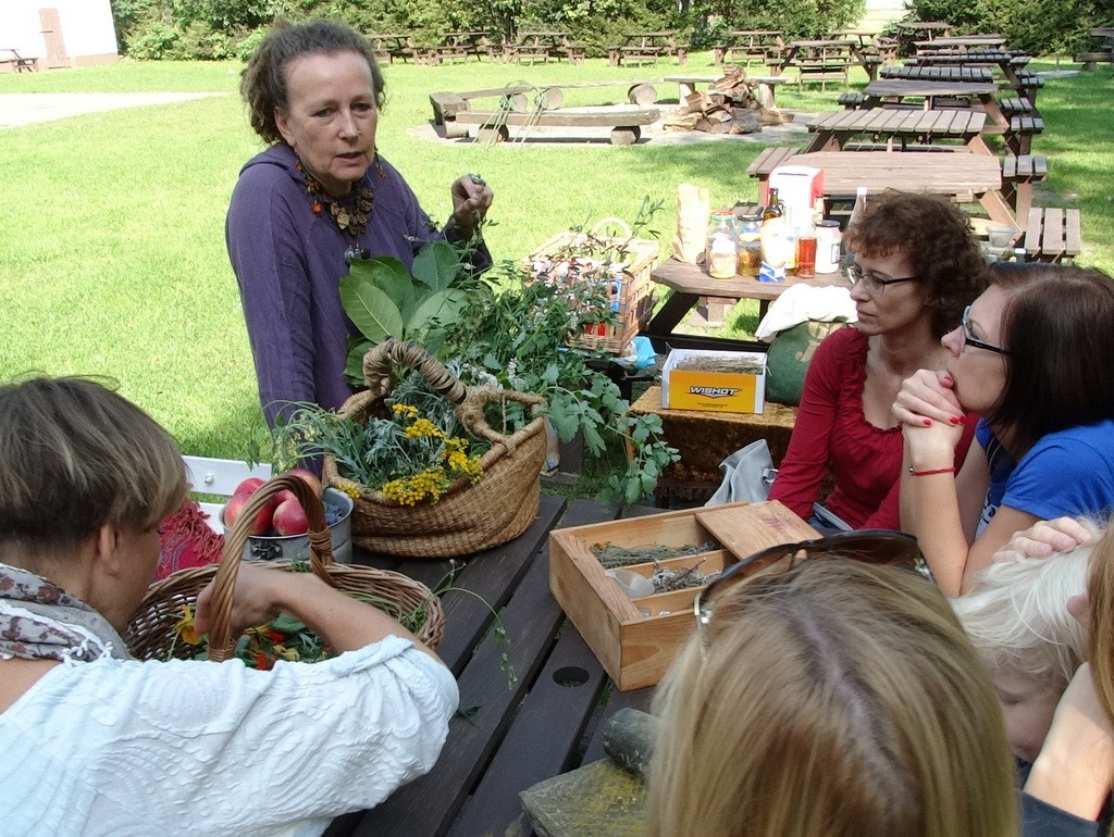 Panie uczestniczące w warsztatach bardzo szybko przekonały się, że rośliny, z których można przygotować „coś” wartościowego, rosną dosłownie wszędzie. Dowiedziały się także, jak w pełni wykorzystywać dary dzikich ogrodów, macerować, wyciskać, rozcierać i suszyć, a następnie zamykać w butelki. Barbara Styczeń zaprezentowała również sposoby na wykonanie naturalnych kosmetyków: perfum czy balsamów, które nadają się także do zjedzenia. – Wszystko, co jest nam niezbędne, mamy na wyciągnięcie ręki – przekonywała Barbara Styczeń. – Ja od 16 lat, czyli odkąd zamieszkałam w lesie i zaczęłam stosować dietę opartą na naturalnych składnikach i ziołach, nie wiem nawet, co to jest katar, nie wiem, co to lekarz i jakiekolwiek badania. Dzięki naturze i ziołom można żyć poza systemem.