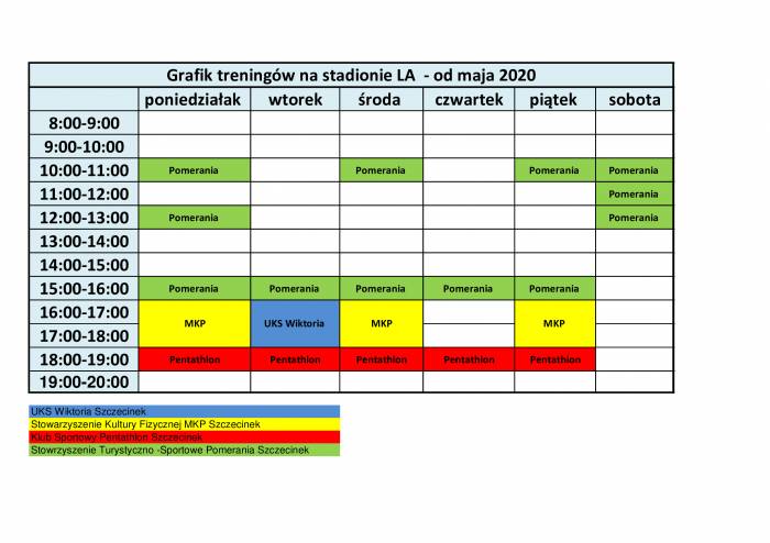 Poniżej zamieszczony został grafik funkcjonowania stadionu od maja 2020 oraz komunikat dotyczący Rozporządzenia Rady Ministrów z dnia 2 maja 2020 r. w sprawie ustanowienia określonych ograniczeń, nakazów i zakazów w związku z wystąpieniem stanu epidemii.