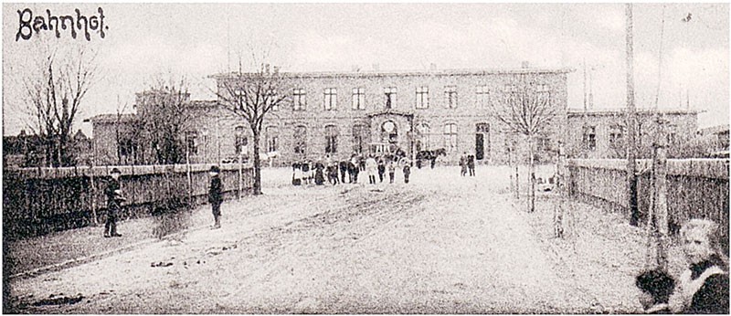 Jest to jedno z najstarszych zdjęć szczecineckiego dworca kolejowego. Dworzec został uwieczniony od strony dz. ul. 28 Lutego, a wtedy Bahnhof Strasse (krótko po wojnie nazwała się ul. Kolejowa). Fotografia z wykaligrafowanym napisem Bahnhof, pochodzi najprawdopodobniej z ok. 1890 roku. Na przebudowę dworca, który w takim kształcie takim zachował się do dzisiaj, trzeba było poczekać jeszcze co najmniej 20 lat. Niestety, na starym zdjęciu do tego fatalnej jakości, wiele szczegółów jest nieczytelnych. Wiemy na pewno (na podstawie drugiego archiwalnego zdjęcia przedstawiającego budynek dworcowy od strony peronów), że parter miał konstrukcję ryglową (tzw. „pruski mur”), zaś ściany piętra licowane były deskami. Ówczesny plac przydworcowy był znacznie mniejszy niż obecnie. W tym czasie do dworca wiodła droga gruntowana. Dowodem na to są widoczne na pierwszym planie, głębokie koleiny. Główne wejście zaakcentowane zostało parterową przybudówką (wiatrołapem) z łukowym oknem nad drzwiami i dużym zegarem. W parterowym skrzydle po prawej stronie mieściła się ekspedycja bagażowo - towarowa. Wiemy na pewno, że oprócz tego w dworcowym budynku znajdował się pokój dyżurnego ruchu, kasy biletowe, hol, poczekalnia i być może niewielki bufet, a na piętrze pomieszczenia biurowe i mieszkanie służbowe. W tym czasie dworzec miał cztery perony. Pierwszy peron zakończony ślepymi torami, znajdował się od szczytu po lewej stronie. Dzisiaj w tym miejscu ulokowany jest budynek pocztowy. Z tego peronu pociągi wyruszały w kierunku Białogardu. Drugi peron, znajdował się już za budynkiem dworcowym, obsługiwał linię w kierunku Słupska, trzeci w kierunku Chojnic, a czwarty do Piły. Pomiędzy peronami w tym czasie nie było jeszcze przejść podziemnych. Dalej znajdowała się bocznica z lokomotywownią, obrotnica oraz skład węgla z ładowarką. Pierwsze połączenie kolejowe miasto uzyskało dokładnie 15 maja 1878 roku. Była to linia łącząca Czarne z Czaplinkiem. 15 listopada tegoż roku oddano do eksploatacji dwie kolejne - do Białogardu oraz do Ustki przez Słupsk i Miastko. Dopiero 15 maja 1879 roku wybudowano tor w kierunku Piły. Pod koniec XIX w. przy ulicy istniała już większość niestającej do dzisiaj zabudowy. W tym czasie wszystkie posesje od ulicy oddzielone były wysokimi płotami. Jak widać, pojawianie się fotografa, wzbudziło olbrzymie zainteresowanie zwłaszcza pośród dzieci. W tle, przy głównym wejściu można dojrzeć, czekający na podróżnych dyliżans – to protoplasta dzisiejszej miejskiej komunikacji autobusowej. Początkowo kursował pomiędzy na trasie pomiędzy dworcem a Rynkiem (dz. pl. Wolności). (jg)