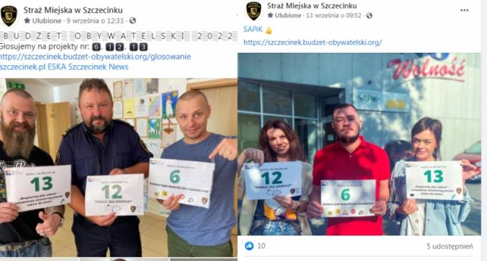Sprawy poszły jednak dalej. Na zdjęciach, umieszczanych na facebookowym profilu Straży Miejskiej w Szczecinku, pojawiają się pracownicy SAPiK oraz sam komendant Grzegorz Grondys w towarzystwie przedstawicieli lokalnych mediów, którzy nie ukrywają swoich preferencji dotyczących projektów z Budżetu Obywatelskiego.