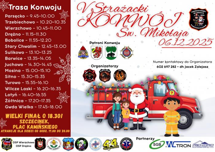 W tym roku odbędzie się po raz piąty widowiskowa impreza pod nazwą „Strażacki Konwój Świętego Mikołaja”. Pojazdy Straży Pożarnej ozdobione świątecznie przejadą przez miejscowości powiatu szczecineckiego i znowu zawitają do Szczecinka!