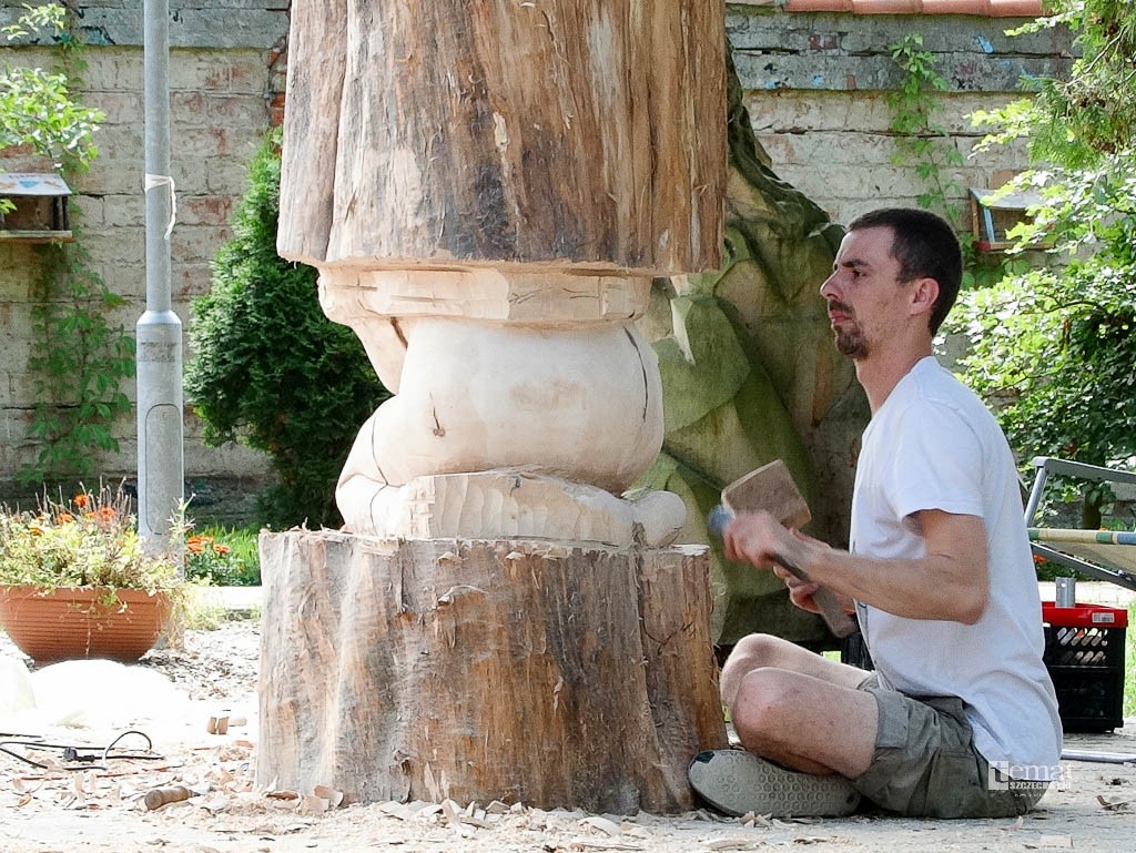 - To nie jest łatwa sztuka – wyjawia dalej nasz rozmówca. – Zwłaszcza, że dla wielu studentów udział w takim plenerze to pierwsza możliwość zrealizowania swojego projektu w tak dużej skali. Większość z nich po raz pierwszy ma kontakt z tak dużym kawałkiem drewna. Na uczelni w czasie roku akademickiego tylko pojedyncze osoby robią podobne realizacje. Reszta nie ma takiej możliwości, choćby ze względu na czas. Na co dzień studenci muszą uczęszczać na zajęcia. A plener jest takim wydarzeniem, gdzie wszystko jest już zorganizowane i można oddać się pracy nad rzeźbą.