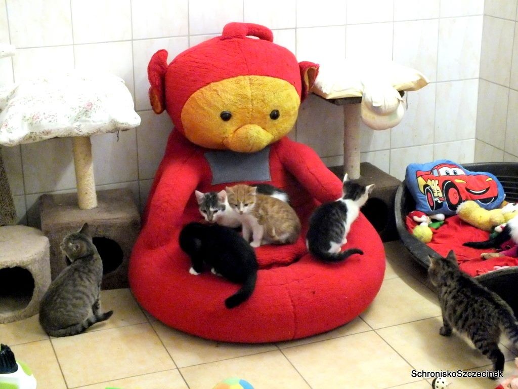Wśród licznych podarków od mieszkańców nie zabrakło także czegoś dla najmłodszych schroniskowych lokatorów, czyli zabawki. Tym razem koty dorobiły się pokaźnych rozmiarów… Teletubisia Po.