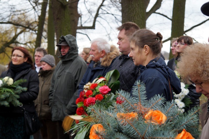 U podnóża pomnika z dwóch kamiennych prostopadłościanów złożone zostały kwiaty i zapalone znicze. (jg)