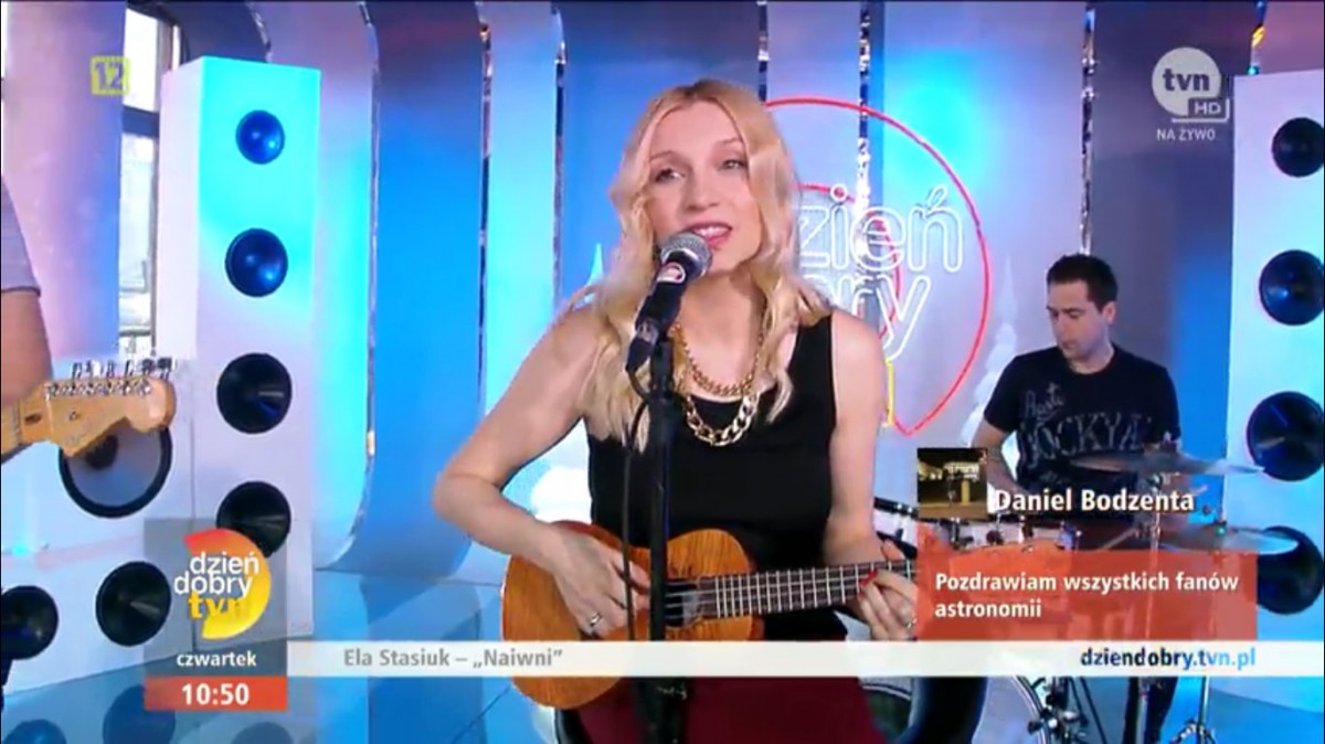 Ela Stasiuk, wokalistka wywodząca się ze Szczecinka, ponownie wystąpiła przed ogólnopolską publicznością. W czwartek (25.02) można ją było zobaczyć w nadawanym przed południem popularnym programie „Dzień dobry TVN” (zobacz: http://dziendobry.tvn.pl/wideo,2064,n/prokop-porownal-ja-do-madonny,194509.html ) . Artystka wraz z towarzyszącym jej zespołem zaprezentowała swój najnowszy singiel „Naiwni”. Co warto podkreślić, prowadzący program byli „naszą” wokalistką wręcz zaskoczeni. Jak powiedział Marcin Prokop, Ela Stasiuk do złudzenia przypomina młodą Madonnę i jest chyba równie zdolna. – Moim zdaniem, jest chyba nawet zdolniejsza – dodała Dorota Wellman.