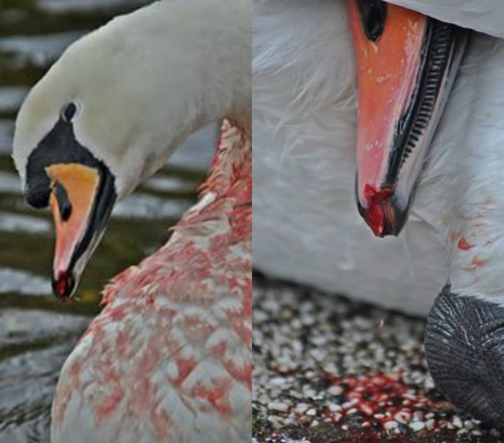 Ranną, zakrwawioną łabędzicę, straż miejska odwiozła do weterynarza. Po założeniu opatrunku, ptak wrócił na jezioro.