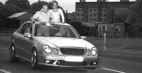 A w Szczecinku "tytani" szos mają się nadzwyczaj dobrze. Oto dowód. - W niedzielę 24 lipca o godzinie 11.31 w na ulicy Narutowicza fotoradar pstryknął takie oto zdjęcie - mówi "Tematowi" Grzegorz Grondys, komendant Straży Miejskiej. - Dozwolona prędkość w tym miejscu to 50 km/h, a samochód jechał z prędkością 129 km/h! Dodatkowo dwóch desperatów stoi w otwartym szyberdachu. Zgroza! (sw)