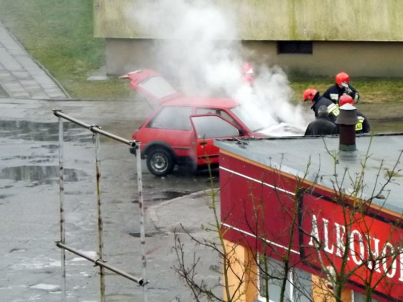 Jadąc ulicą Koszalińską kierujący toyotą starlet zauważył wydobywający się spod maski dym. Zjechał na parking i próbował sam ugasić pożar. Było to nieskuteczne. Z ogniem poradzili sobie dopiero wezwani na pomoc strażacy. Pożar strawił komorę silnikową. W zdarzeniu nikt nie ucierpiał. (rb)