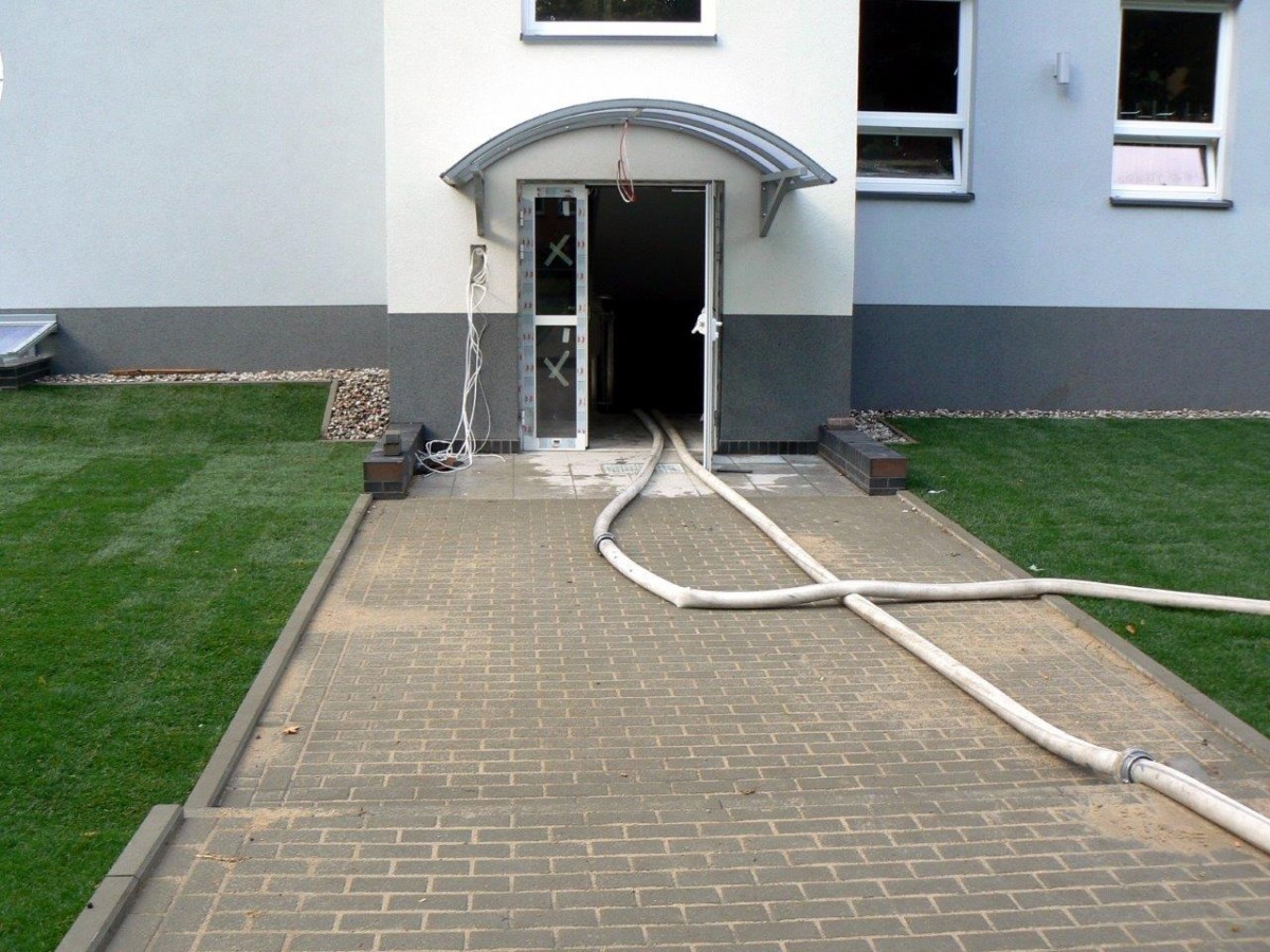 Nie wiedzieć czemu, woda wtargnęła na najniższe kondygnacje budynku, a konkretnie do pomieszczeń przyszłej strzelnicy. Na pomoc budowlańcom ruszyli nasi strażacy. Jak nam powiedzieli na miejscu akcji, wody w strzelnicy było "tak około pół metra". Pompowanie jedną pompą trwało kilkadziesiąt minut.