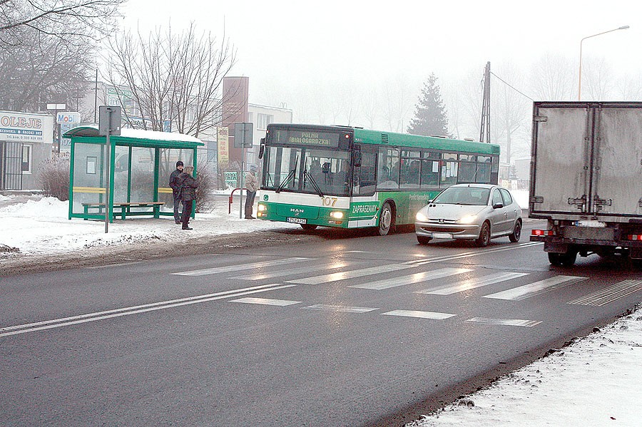 Na niefortunne usytuowanie przystanku autobusowego przy Urzędzie Gminy, przy ul. Pilskiej zwrócił uwagę nasz Czytelnik. - Wprawdzie bardzo rzadko jestem w tym rejonie miasta, ale moim zdaniem, przejście dla pieszych w takim miejscu, jest usytuowane niewłaściwe. Trudno naszemu rozmówcy nie przyznać racji. Wejście na pasy, przy stojącym na przystanku autobusie, jest niczym gra w ruską ruletkę. Mimo podwójnej ciągłej, zazwyczaj kierowcy omijają stojący na przystanku autobus. Dodajmy, że na przystanku nie ma zatoczki, nie ma nawet chodnika. Zazwyczaj w tym miejscu są kałuże i błoto. Aby nie pochlapać pasażerów błotnistą mazią, kierowcy autobusów muszą zatrzymać się na jezdni. Jak się okazuje zima może być sprzymierzeńcem kierowców. Ponieważ o tej porze roku błoto jest zamarznięte, kierowcy autobusów wjeżdżają na pobocze. Robią to, mając na względzie bezpieczeństwo pieszych i pasażerów, a także po to, aby umożliwić bezproblemowe omijanie autobusu przez inne pojazdy. (m)