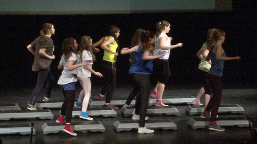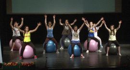 Pani Urszula Szpakowska - nauczyciel wychowania fizycznego w Gimnazjum nr 1, zaprezentowała układ fitness w wykonaniu uczennic naszej szkoły. Dziewczęta żywiołowo przedstawiły układ, wywołując aplauz zgromadzonych.