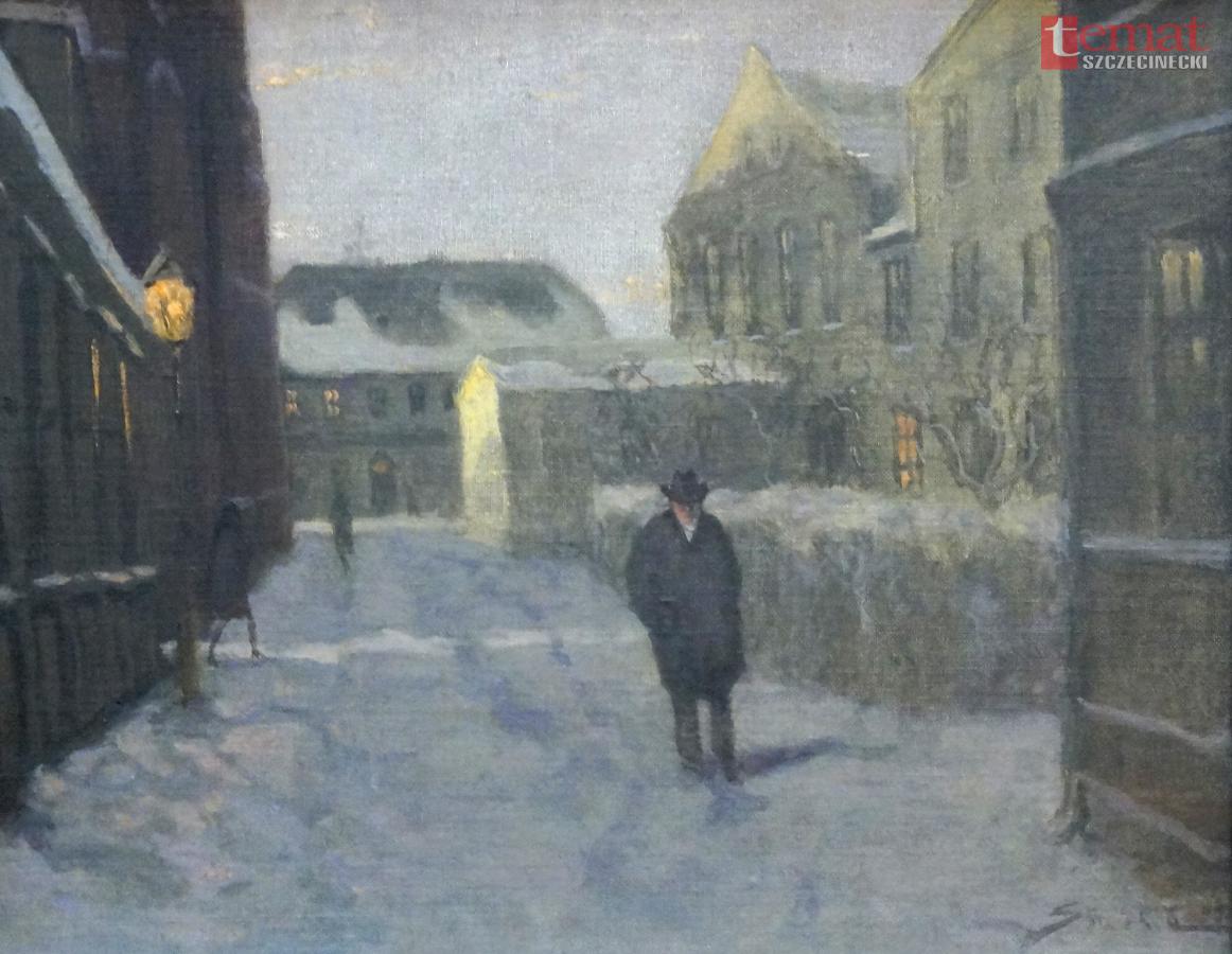 Lampy gazowe stanowiły nieodłączny atrybut starych miast. W nocy, choć światła dawały niewiele, tworzyły wprost bajeczny nastrój. Nie jest więc przypadkiem, że wielcy malarze - impresjoniści zachwycali się nocnymi, wielkomiejskimi pasażami rozświetlonymi żółto-czerwoną poświatą płynącą z gazowych lamp. Ale co tam wielki świat. Również i w Szczecinku nastrojowe,nocne pejzaże tworzył na przełomie XIX i XX wieku lekarz – artysta Paul Stubbe – wychowanek tutejszego Gimnazjum Księżnej Jadwigi. Takim obrazem jest nocny widok na ul. Kaznodziejską (dz. ks. P. Skargi). Jego prace (sumie 9 obrazów) z nieistniejącymi już dzisiaj zakątkami miasta można zobaczyć w Muzeum Regionalnym.