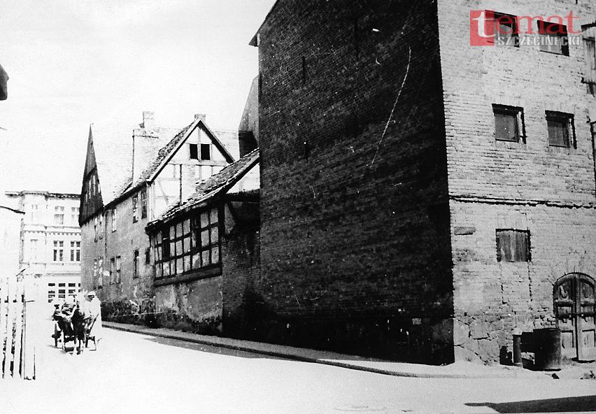 Wróćmy do starego zdjęcia. Po lewej aż do skrzyżowania z dz. ul. Junacką ciągnie się wysoki mur. Za nim kryje ogród i sad. Po prawej, zza parterowego budynku warsztatowego, w miejscu gdzie dzisiaj jest niewielki przyblokowy skwer, widać ścianę szczytową XIX-wiecznego spichlerza. Mimo że już od dawna znajduje się pod ochroną konserwatorską, nic o nim poza zdawkową informacją nie wiadomo. Najbliższy tego typu obiekt znajdował się tuż obok przy skrzyżowaniu z ul. ks. Elżbiety (rozebrany w latach 60.) a także przy ul. Ogrodowej oraz ul. Zamkowej. Co ważne, dwa ostatnie przetrwały epokę masowych rozbiórek jaka nastąpiła pod koniec lat 60.