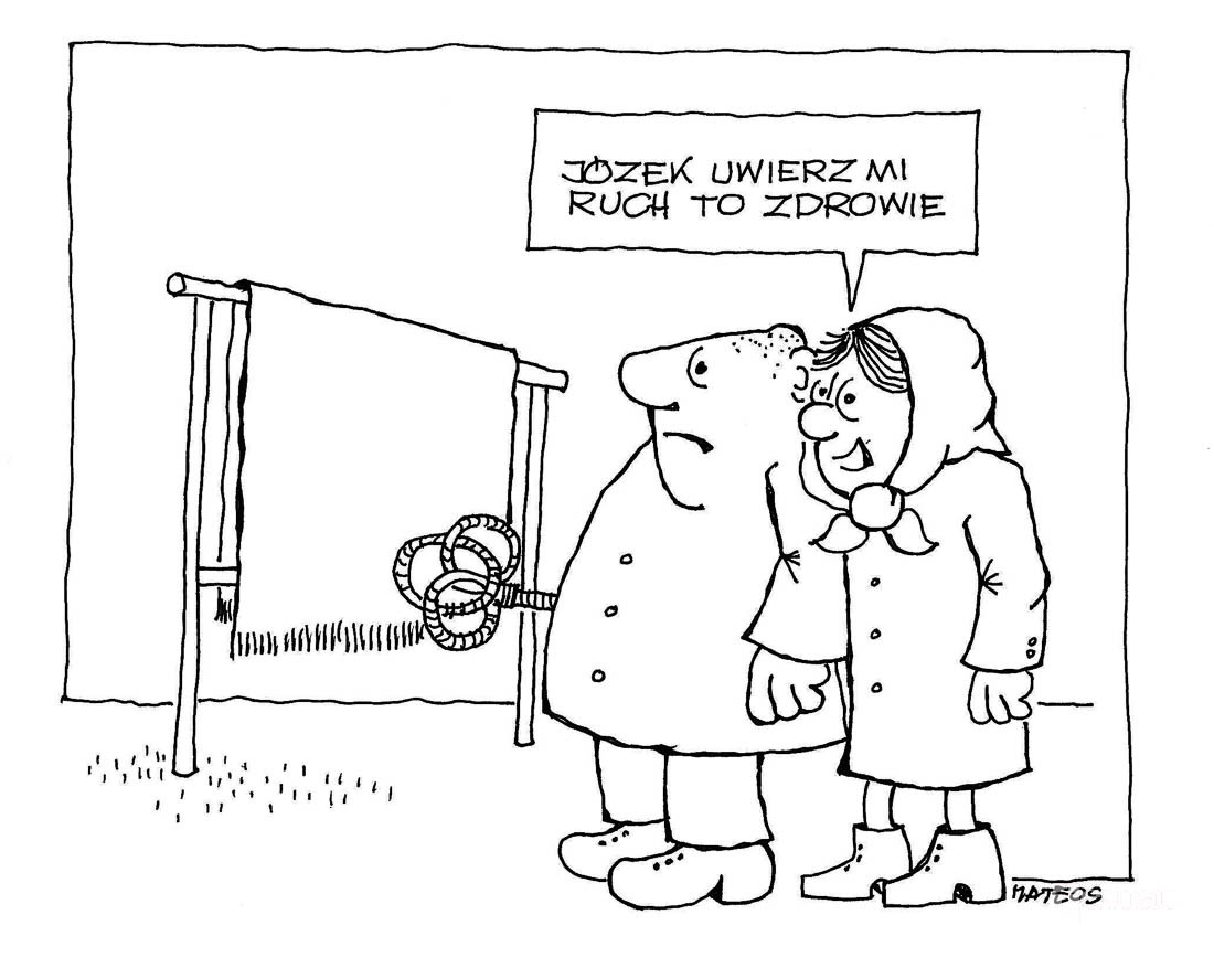 Gdym jednak odważnie stanąłem na wadze, tom zrozumiał, iż w błędzie i to bardzo mylnym byłem. Okazało się albowiem, że przez podjadanie małego co nieco w okresie zimowym, przybyło mi okrągluśkie pięć kilogramów. Cóż zatem z tym faktem i rzeczom zastanom uczynić? Ano wyjścia jak zwykle są dwa. Pierwsze i najprostsze, to kupić nową garderobę! Niestety, z racji tej, że ciuchy to nie są tanie rzeczy, za radą mej ślubnej muszony zostałem sięgnąć po rozwiązanie drugie... – czyli szlaban na lodówkę i ruch fizyczny w życie wcielony... Na początek zacząłem odskuteczniać marsze, co by swe dolne odnóża do przebierania energicznego przyuczyć. Zapewne, za dni parę chycę za kijki, aby i górne partie mego deczko utytego ciała w ruch wprawić. Ale co by w te i we wte nie latać bez celu postanowiłem w zawodach jakowyś latoś wystartować. A co, a jak, radę dam, choćbym miał na metę przydreptać ostatni, to nie odpuszczę, gdyż i ponieważ, jak każdy wie, nie miejsce się liczy ino udział w imprezie.