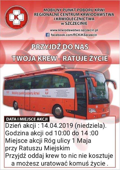 Warto dodać, że Mobilny Punkt Krwiodawstwa odwiedzi Szczecinek 14 kwietnia (niedziela). Krew będzie można oddawać w godzinach 10-14. Krwiobus zaparkuje tuż przy ratuszu, na rogu ul. 1 Maja. Jak podkreślają organizatorzy, oddawanie krwi nic nie kosztuje, a może uratować komuś życie.