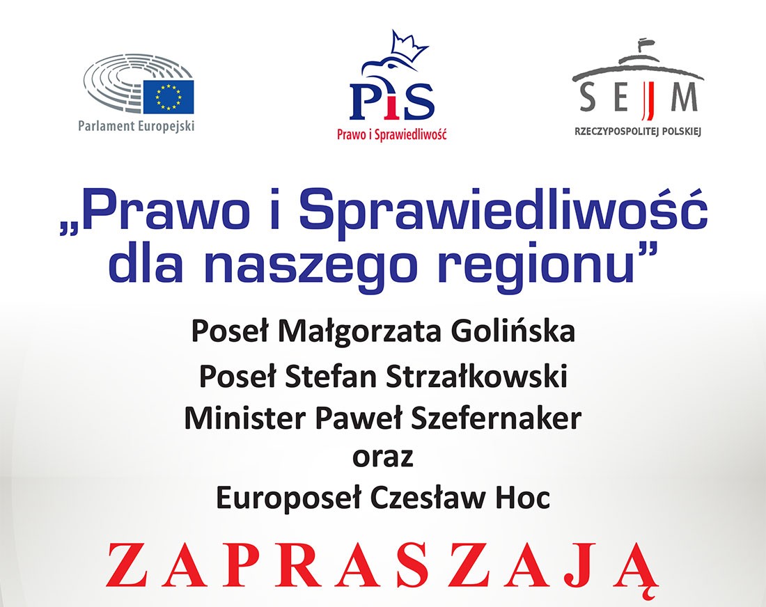 Prawo i Sprawiedliwość zaprasza mieszkańców na spotkanie podsumowujące rok od wyborów parlamentarnych 2015, które odbędzie się 20 listopada w kinie Wolność o godz. 12.00. Prezentować dokonania i odpowiadać na pytania mieszkańców będą posłowie Małgorzata Golińska, Stefan Strzałkowski oraz mininster Paweł Szefernaker.