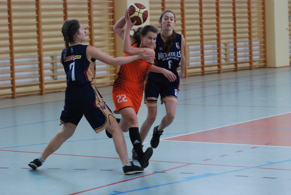 W drugim spotkaniu walkę z Herkulesem podejmuje zespół młodziczek. Średnio dwa lata młodsze, ambitnie grające koszykarki Marcina Gurtatowskiego, silną obroną od początku spotkania utrudniają grę zawodniczkom z Białogardu. Silna presja na rozgrywanej piłce, powoduje wiele strat rywalek – zamienianych na punkty w szybkim i skrajnie zespołowym ataku.