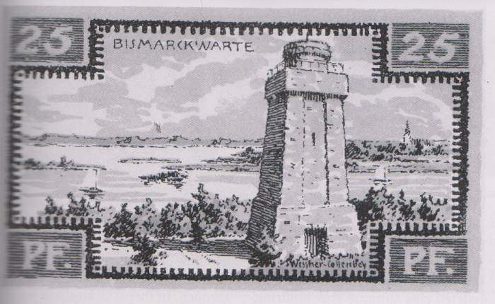 Potem, już po I wojnie światowej w okresie kryzysu, wieża (nazwana Bismarckwarte) została nawet uwieczniona na notgelcie – tymczasowym środku płatniczym wydawanym przez miasto.