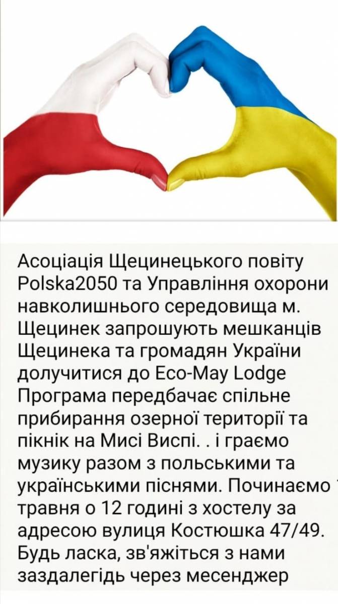 Stowarzyszenie Polska 2050 Powiatu Szczecineckiego oraz Wydział Ochrony Środowiska UM Szczecinek zapraszają mieszkańców Szczecinka oraz obywateli Ukrainy na wspólną Eko-Majówkę.