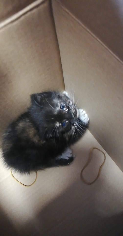 Od razu w czwartek mieszkanka Szczecinka, pani Monika, postanowiła pomóc zwierzętom i udało jej się dostać do środka. Pierwszego dnia złapana została jedna malutka kotka. Trafiła do weterynarza. Okazuje się, że ma koci katar (u kotów jest poważną chorobą) i chore oczka, co jest najpewniej jego następstwem. Kotki były wychudzone i głodne.