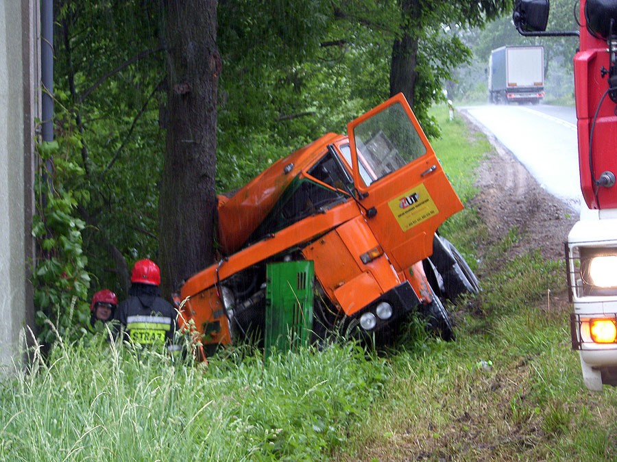 Do wypadku doszło dziś (poniedziałek 3.06) około godz. 8 na drodze wojewódzkiej nr 172 koło Radacza. Jak nam powiedział zastępca Komendanta Powiatowego PSP w Szczecinku st. kpt. Jacek Dylewski, samochód ciężarowy Star zjechał na pobocze i uderzył w drzewo. – Jedna osoba, pasażer, jest poszkodowana. Z obrażeniami ciała została przewieziona do szczecineckiego szpitala. Kierowca jest opatrywany na miejscu przez ratowników pogotowia – mówi „Tematowi” st. kpt. J. Dylewski. (sw)