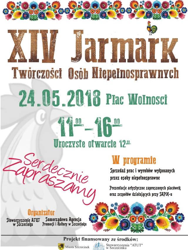 Jak przekonują organizatorzy, dla uczestników jarmarku ten dzień jest okazją do świętowania i "bycia” ze sprawnymi mieszkańcami Szczecinka. Podczas Jarmarku nie zabraknie muzyki i śpiewu, na scenie odbędą się prezentacje artystyczne w wykonaniu uczestników zaproszonych placówek oraz artystów i zespołów działających przy SAPiK.