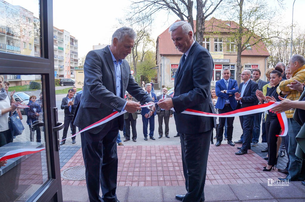 W czwartek (28.04) w godzinach popołudniowych przy wejściu do dawnej siedziby policji rozpostarta została biało-czerwona wstęga. Właściciel gmachu, Wiesław Pączka, do jej uroczystego przecięcia zaprosił… komendanta szczecineckiej policji insp. Józef Hatałę. – Teraz jest to już radosny, uśmiechnięty budynek – zauważył wobec licznie zaproszonych gości W. Pączka. – Dzisiaj spotykają się tutaj ci, którzy pracowali przy przebudowie. Są też moi kontrahenci, z którymi w ostatnim okresie współpracowałem i którzy doradzali nam w różnych kwestiach.