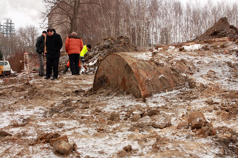 28 marca podczas prac ziemnych przy budowie ul. Waryńskiego (odcinek pomiędzy stacją kolejową z składem Krono) natrafiono na podziemny, stalowy zbiornik. Zbiornik o średnicy ok. 2 m w ¾ wypełniony jest mazistą czarną substancją o zapachu ropy. W jego górnej części znajduje się pokrywa do wlewu. Instalacja w połowie swojej długości znajduje się w pasie drogowym, a jej druga część już na terenie Krono. Tuż przy zborniku odkopano również znacznej długości parciane węże strażackie. O znalezisku z samego rana powiadomiono dzisiaj Wydziały Ochrony Środowiska w Urzędzie Miasta oraz w Starostwie Powiatowym. Pracownicy obu wydziałów na razie nie chcieli się w tej sprawie wypowiadać. Nie wiadomo również na razie jaka substancja znajduje się w zbiorniku. Ratusz jako inwestor zamierza wynająć specjalistyczną firmę do wypompowania i utylizacji zawartości. Na razie jednak znalezisko zostanie odpowiednio zabezpieczone.
