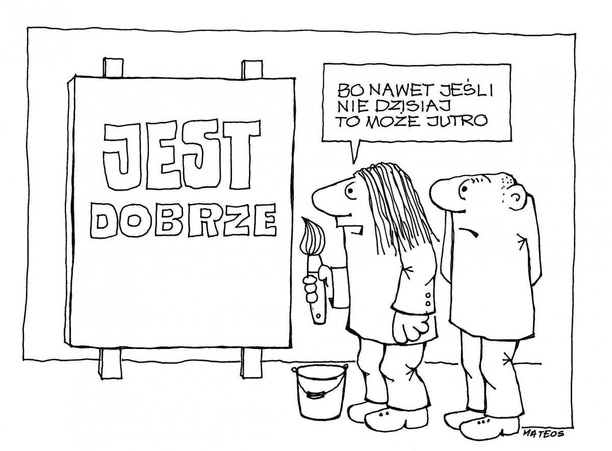A ja cały czas nic ino: MEA CULPA i MEA CULPA, tyle że już z całkiem inszego powodu, gdyż ten robotnik i to hasło com je 41 lat temu namalował znowu na wierzch wylazło. Choć jeśli się temu przytomnie przyjrzeć, to właściwie wstydzić się już nie ma czego. Wszak partia znowu przewodzi i nawet jeśli suweren kiedyś przewodnictwa ją pozbawi, to przewodzić będzie i tak, tyle że insza bo ona, znaczy się partia, tak już ma.
