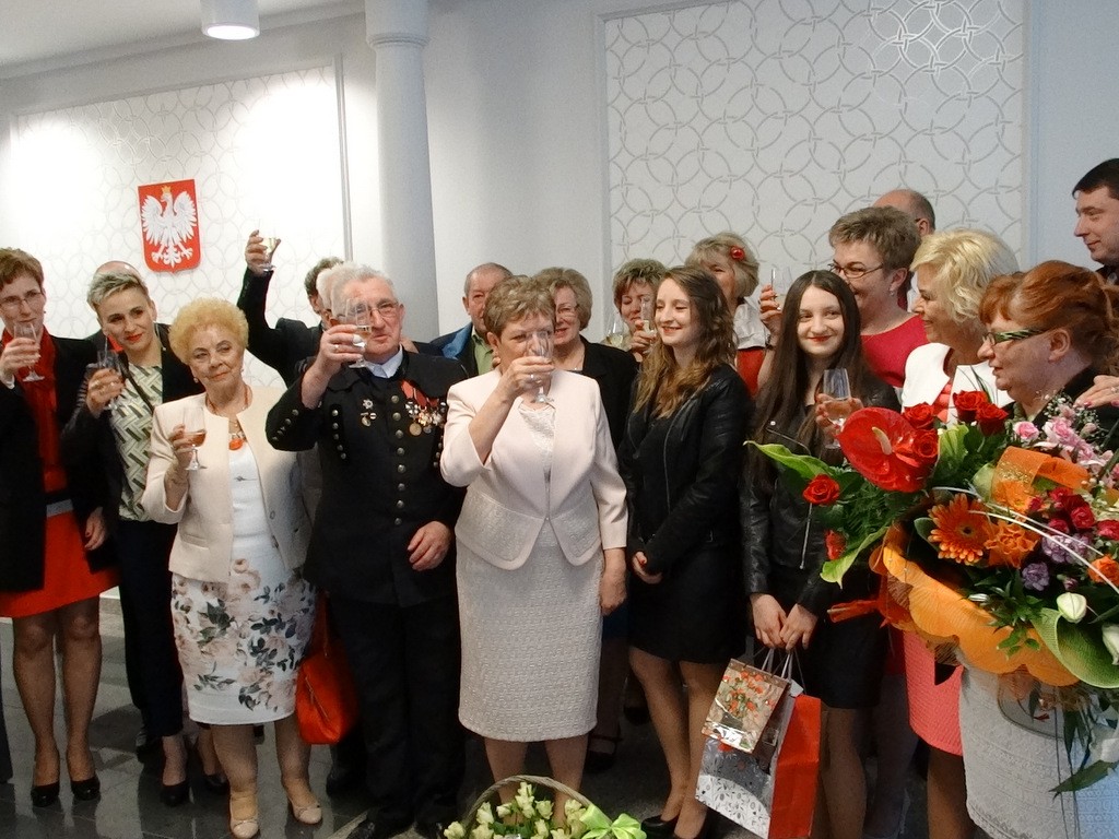 W uroczystości Złotych Godów państwa Janickich uczestniczył także wójt Gminy Szczecinek Ryszard Jasionas. Wójt złożył jubilatom gratulacje i wręczył prezenty. Na koniec przy symbolicznej lampce szampana wszyscy zaśpiewali wspólnie donośne „Sto lat!”.