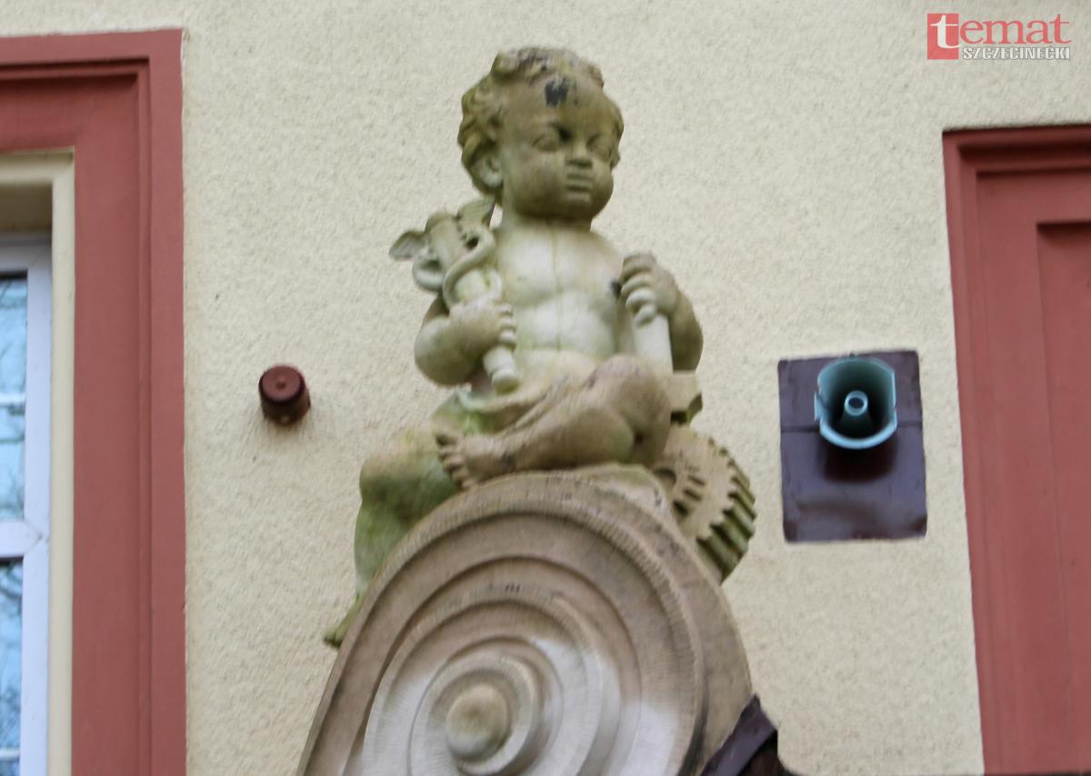 Pulchniutkie putto od strony ul. Mickiewicza symbolizuje rolnictwo i rybołówstwo. W prawej ręce przytrzymuje sierp z pękiem zżętych kłosów, a w lewej dorodną rybę.