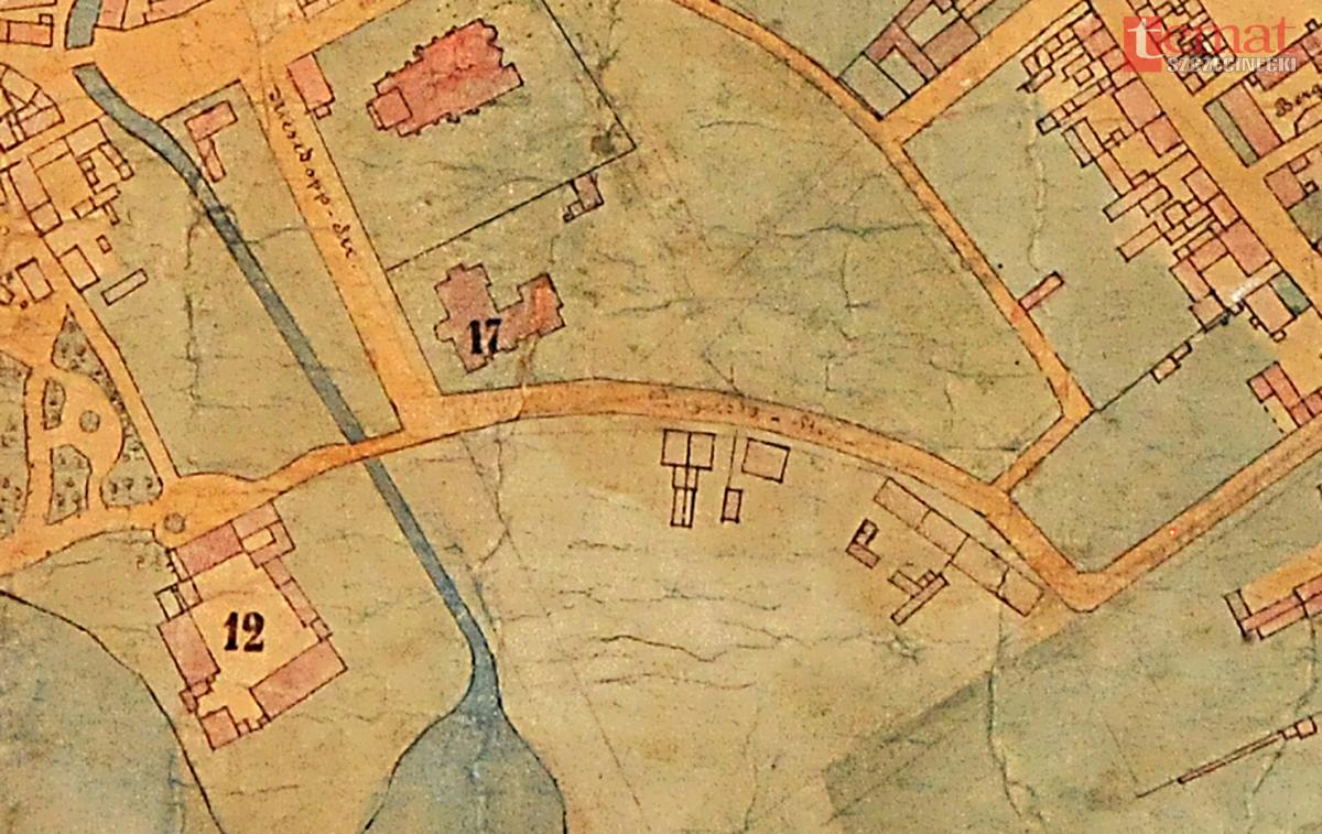Pod budowę nowej siedziby Kreissparkasse wybrano ówczesny kraniec zabudowanego terenu. Przypomnę, że w tym czasie zwarta zabudowa kończyła się przy dz. ul. Powstańców Wlkp. Dowodem jest pochodzący z pierwszych lat XX wieku ten fragment planu miasta.