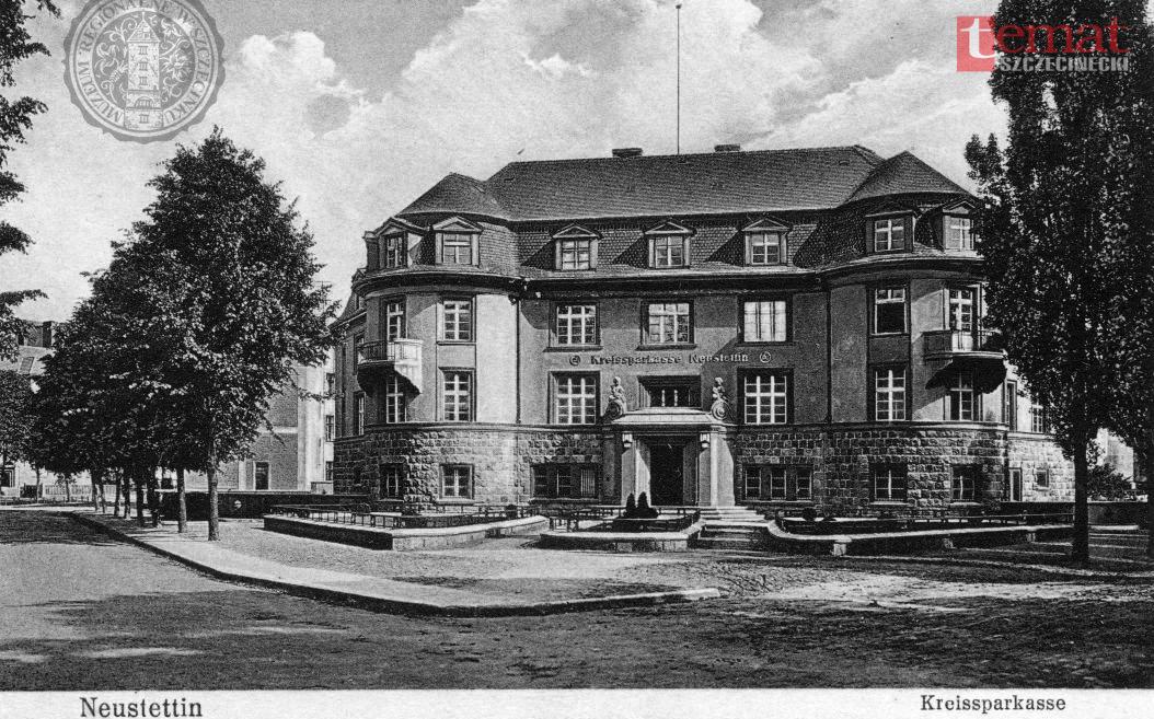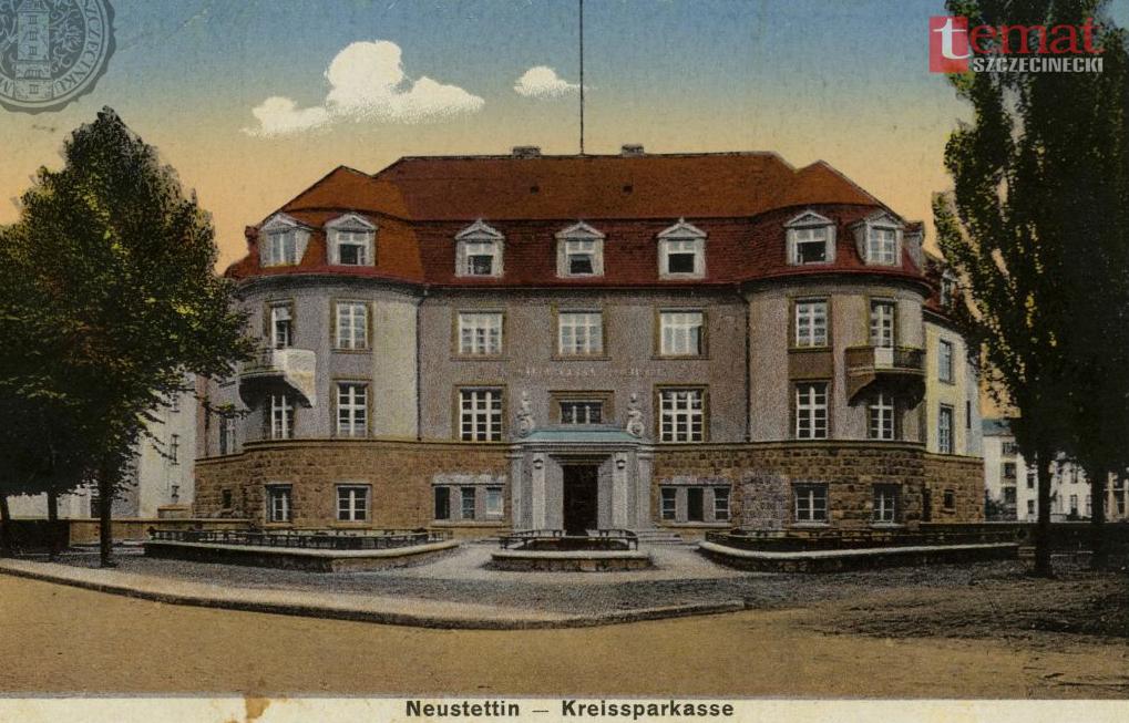Kiedy w dalekiej Warszawie powołano PKO S.A. po stronie niemieckiej w nadgranicznym Szczecinku już od czterech lat w swojej nowej siedzibie przy skrzyżowaniu Niesedopstraße (dz. ul. 3 Maja) i Augustastraße (ul. Limanowskiego) prosperowała Kreissparkasse (Powiatowa Kasa Oszczędności). Powiatowe i miejskie instytucje finansowe i kredytowe obsługujące głównie przemysł, rzemiosło i handel istniały w mieście już od połowy XIX wieku. Taką właśnie instytucją finansową była założona w 1856 roku Kreissparkasse.