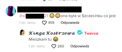 „…znana influencerka i tiktokerka…” – bardzo ciekawe stwierdzenie, nawet bardziej niż „bardzo”!!! Z takimi określeniami w internecie spotkałem się już kilka razy, co mnie w końcu zmobilizowało do sprawdzenia tych nazw/określeń w słownikach. Okazało się, że te dwa słowa wzajemnie zupełnie się wykluczają. A jeżeli już muszą współistnieć, to chyba tylko w środowiskach „niedomagających”. Oto tylko jeden przykład: Influencerka – https://dobryslownik.pl/slowo/influencerka/224023/, to kobieta aktywnie działająca w mediach społecznościowych i mająca silny wpływ na zachowania i opinie swoich fanów, zatrudniana zwykle przez duże firmy do promocji ich marek w tych mediach. Tiktokerka – Wg: https//wsjp.pl/haslo/podglad/107280/tiktokerka, to kobieta tworząca filmiki w aplikacji mobilnej TikTok. Natomiast, wg: https//www.miejski.pl/, dziewczyna uzależniona od aplikacji Tik Tok, znająca trendy aplikacji (często osoby w wieku 8-18 lat), przeważnie nie za mądra. Więc, pojawia się pytanie: Jak osoba niezbyt mądra, może mieć silny wpływ na zachowania i opinie innych?! Domniemam, że są to ludzie podobnego usposobienia i poziomu, jednak zasmuciło mnie, że tych osób (fanów?) są miliony, jak pisze autor artykułu !!! To z kolei nasuwa wątpliwości, co do dalszego losu ludzkości?! A tu już pasuje sarkazm z amerykańskiej komedii filmowej pt.: G i G. Łatwo to rozszyfrować ! Pozdrawiam!