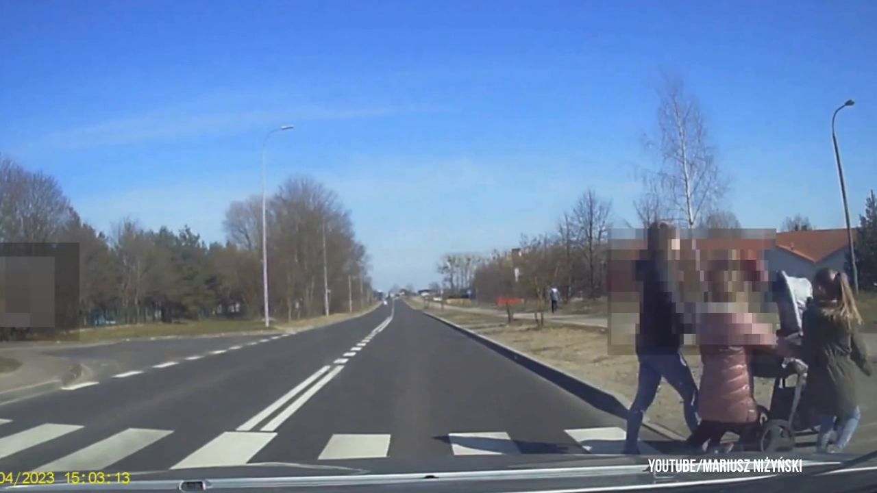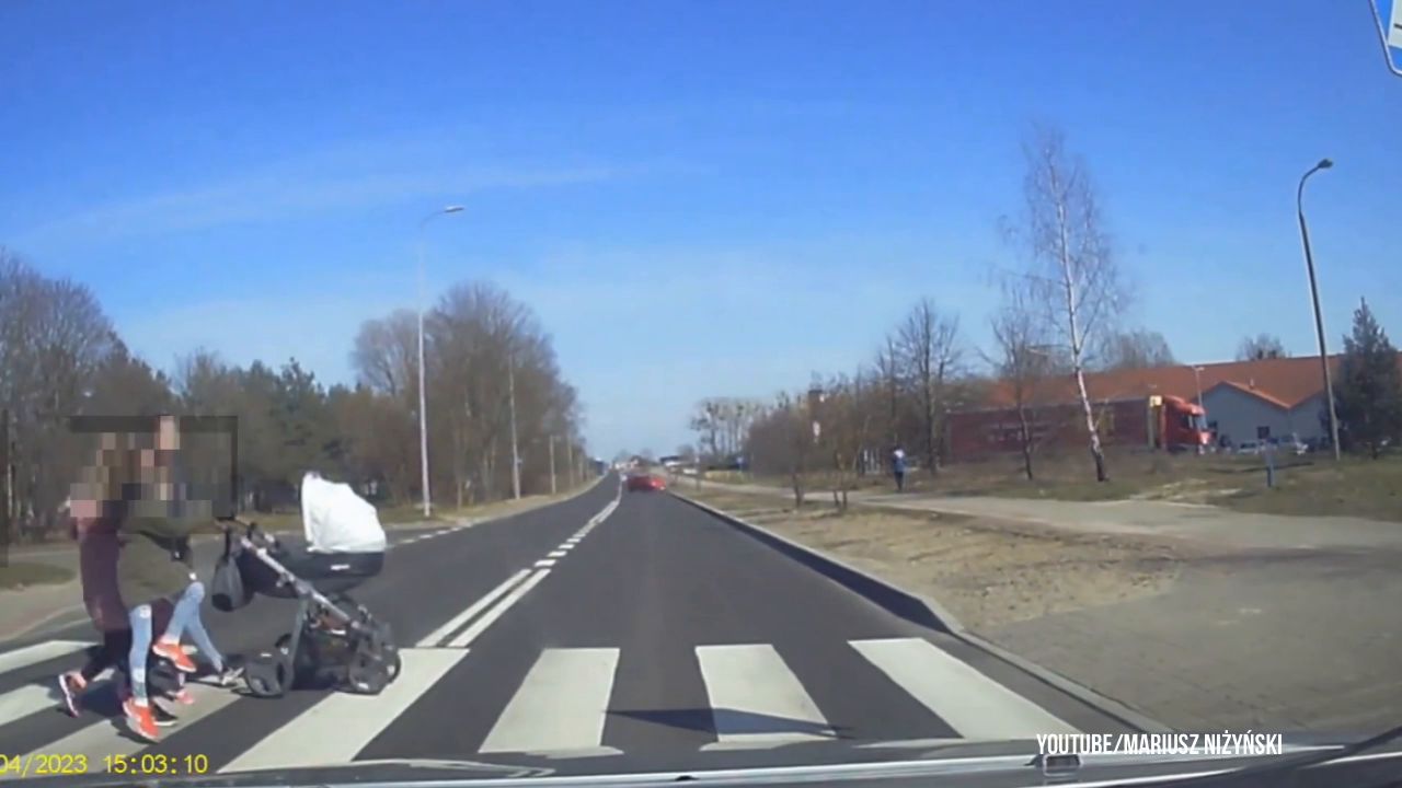 Wideo: Kierowca BMW wyprzedzał na przejściu. Sekundę przedtem była na nim mama z trójką dzieci
